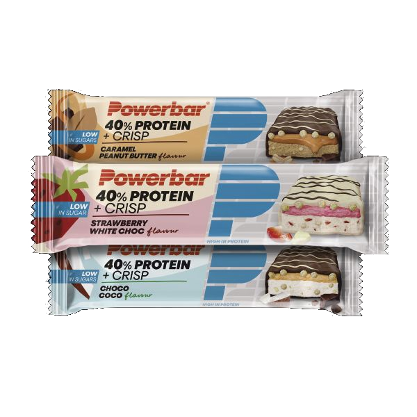 ELEVATO CONTENUTO DI PROTEINE DEL 40% - ciò significa ben 16 g di proteine ??per barretta da 40 g. Una dieta ricca di proteine ??supporta la costruzione e il mantenimento dei muscoli, ecco perché la deliziosa barretta proteica è ideale come supplemento al tuo allenamento. A BASSO ZUCCHERO con solo 0,8 g - 1,4 g di zucchero per barretta, a seconda della varietà. La barretta proteica 40% Protein + Crisp è l'alternativa consapevole alla barretta di cioccolato se presti attenzione al tuo equilibrio di zuccheri. CREMOSO, CROCCANTE, DELIZIOSO - In questa deliziosa barretta ad alto contenuto proteico di Powerbar, croccanti croccanti incontrano un morbido strato proteico condito con note aromatiche speciali come fragola, cocco o caramello. PIACERE MASSIMO in tre diverse varietà con cremoso cioccolato bianco alla fragola, cioccolatoso Choco Coco con un delizioso sapore di cocco e burro di arachidi al caramello per tutti gli amanti delle barrette al burro di arachidi. Sono importanti tanto esercizio fisico e una dieta varia e sana. Allo stesso tempo, una dieta ricca di proteine ??supporta il mantenimento e la costruzione dei muscoli. La Powerbar® 40% PROTEIN + CRISP combina sapientemente elementi croccanti con uno strato morbido e allo stesso tempo contiene poco zucchero. Questo lo rende la ricompensa ideale dopo un'attività attiva. Modo d'uso: 1 barretta/giorno. Può avere effetto lassativo se consumato in eccesso. Nell'ambito di una dieta variata ed equilibrata e di uno stile di vita sano.