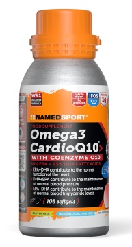 Omega 3 Cardio Q10 arricchisce e completa la famiglia Omega 3 Double Plus e fornisce la più elevata concentrazione di Acidi Grassi EPA e DHA per capsula soft gel (1g di olio di pesce per capsula). Benefits: Formula altamente concentrata (56% Acidi grassi EPA + 23% Acidi grassi DHA per un totale di Acidi Grassi Omega 3 pari all’85%1). Altissima qualità e purezza delle materie prime. Olio di pesce concentrato e purificato, certificato IFOS 5 Stelle. Con 25mg di Coenzima Q10 per soft gel. Altamente digeribile, senza retrogusto. Certificazione di qualità Informed Sport. COME: Si consiglia l’assunzione di 1-4 softgels al giorno con un bicchiere d'acqua. 1 softgel per la normale funzione cardiaca, 2 softgels per il mantenimento della normale funzione cerebrale e capacità visiva, 3 softgels per il mantenimento dei normali livelli di trigliceridi nel sangue, 4 softgels per il mantenimento di una normale pressione sanguigna. QUANDO. Free Time. CARATTERISTICHE NUTRIZIONALI: Gluten Free. Lactose Free. No Added Sugar. Avvertenze: non superare la dose massima giornaliera consigliata. Tenere fuori dalla portata dei bambini al di sotto dei 3 anni d’età. Gli integratori alimentari non vanno intesi come sostituti di una dieta varia ed equilibrata e di un sano stile di vita. Non superare il livello di assunzione giornaliera supplementare di 5g di combinazioni di EPA e di DHA. Indicato per adulti. Modalità di conservazione: conservare in luogo fresco e asciutto, a temperatura ambiente. Evitare l'esposizione a fonti di calore e a raggi solari. Il termine minimo di conservazione si riferisce al prodotto correttamente conservato in confezione integra. Non disperdere nell’ambiente dopo l’uso.